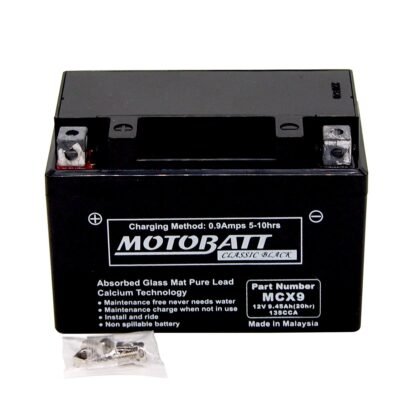 بطارية Motobatt Classic FA AGM MCX9، رقم المرجع: YTX9BS البادئات: MC تحل محل سلسلة Yuasa YB، وMCX تحل محل سلسلة Yuasa YTX، وMCZ...